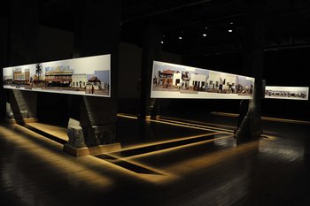 Dans la rubrique des succès il y avait une conjugaison de valeurs sûres et d’heureux essais. Dans les valeurs sûres on pouvait compter le saisissant document d’Alfredo Jaar sur le photographe sud-africain Kevin Carter aux Ateliers Brillant (The Sound of Silence est une œuvre originellement créée pour Fotofest 2006) ; les Ambiguous Icons de Jim Campbell ; le travail du québécois Alain Paiement (à la Fonderie Darling) dont les vues « aériennes » d’appartements et de lieux clos ont gagné en humour et ironie (un travail qui a déjà trouvé un émule, humour en moins, en la personne de l’allemand Andreas Gefeller) ; le travail d’un autre canadien (de Toronto), Robert Burley qui documente la fin de l’ère argentique et affichait une grande fresque sur la façade du Centre Canadien d’Architecture représentant l’implosion des usines Kodak à Châlons sous forme d’un positif/négatif polaroid géant, évoquant ainsi aussi les difficultés de cet autre fabricant de produits photographiques qui ont marqué plusieurs générations. Le travail du congolais Sammy Baloji, quatre grandes fresques panoramiques faites de le juxtaposition de plusieurs images prises en continuité–approche qui n’est pas sans rappeler le Every Building on the Sunset Strip d’Edward Rusha en… 1965–dans les rues de Lukasi montrait d’intéressants détails et une approche moins conceptuellement sèche que celle de Ruscha. La grande vue aérienne de Beyrouth géante, Le Cercle de Confusion (2001), par Joana Hadjithomas et Khalil Joreige se compose de centaines de petits découpages rectangulaires adhésifs que les spectateurs sont invités à décoller un à un, révélant le miroir sur lequel la photographie murale est réalisée. L’image évolue donc avec le temps, reflétant les acteurs même de cette « destruction fictive » de Beyrouth, les visiteurs qui arrachent chaque portion de l’image, essayant peut-être de les responsabiliser dans leur manque d’intérêt et leur oubli du sort de cette ville et de ce pays–spectateurs et complices passifs rendus actifs l’espace d’un moment.