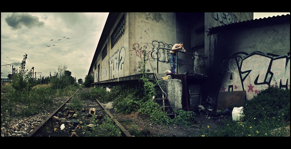 Thomas Marquez, 28 ans,enseignant à domicile à Lyon et apprenti photographe. Les dix images que je vous présente constitue une partie d'une serie "Road to nowhere" sur l'errance d'un homme dont on ne connait pas le but mais dont on connaît peut-etre déjà la fin. Amoureux du cinéma, ce qui explique les bandes noires qui pourront peut-être paraître un peu superflues pour certains, mais j'aime à imaginer que mes images puissent être tirées de films de David Lynch ou de Gus Van Sant, voir de série TV comme Breaking Bad, ou encore de livre comme ceux Hubert Selby Junior (certaines de mes images sont directement inspirées de scène de "Le Démon" ou de "La geôle"). Le titre est par ailleurs directement inspiré du livre "The Road" de Cormack McCarthy. Je veux que chacun puisse se raconter sa propre histoire en regardant mes images. On ne sait pas qui est cet homme, où il va, pourquoi il y va. Chacun peut s'imaginer son propre scénario ou du moins je l'espère. La solitude, l'envie de tout quitter, la mélancolie sont des sentiments que tout un chacun peut ressentir à un moment ou un autre.