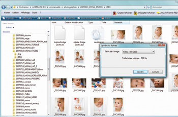 Etape 3 : L'assistant s'ouvre immédiatement et vous propose une liste déroulante de différentes tailles : Très petite (640x480 pixels), Petite (800x600 pixels), Moyenne (1024x768 pixels), Grande (1280x1024 pixels). Il vous indique de plus le poids total en kilo-octects.
